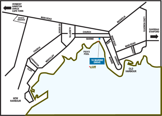 Wendy's cottage is named after a lone female whale that used to visit the town in the late 1930's. According to SJ du Toit's book, ‘Hermanus Stories' , this whale, who was fondly known as Wendy, was considered one of the family by the village folk, as she used to return year after year. She stopped coming to the bay in the early 1940's but the house that was situated on the rocks, near that lonesome spot, was named Wendy's cottage in her honour. The tradition was carried on to the 1950s when another female whale was named Wendy. The press regularly reported on the movements of Wendy and her calf.